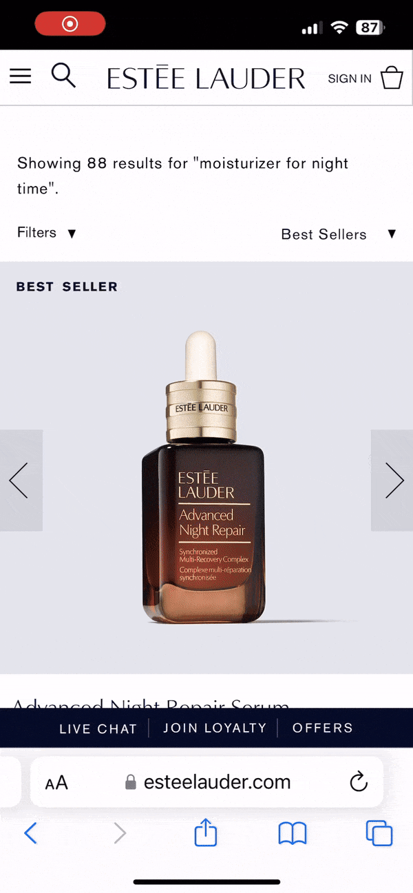 As Product Manager for Search, I led the launch of Estée Lauder’s first-ever Voice-to-Text Search across their North America mobile sites, collaborating with the Innovation Team, UX/UI, Engineering, and the Estée Lauder Creative Team. With over 60% of customer searches starting on mobile, this groundbreaking feature aimed to help customers search quickly without manually typing.